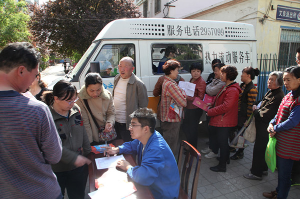 公司服務(wù)人員在該小區(qū)院內(nèi),一邊在流動(dòng)服務(wù)車內(nèi)為用戶辦理居民采暖證,一邊在咨詢服務(wù)臺(tái)為用戶提供專業(yè)的供熱咨詢服務(wù),一邊在供熱宣傳展板前講解供熱政策,一邊向用戶發(fā)放供熱常識(shí)宣傳頁。整個(gè)服務(wù)現(xiàn)場(chǎng)氣氛熱烈、井然有序,深受小區(qū)居民和用戶的歡迎和贊揚(yáng)。