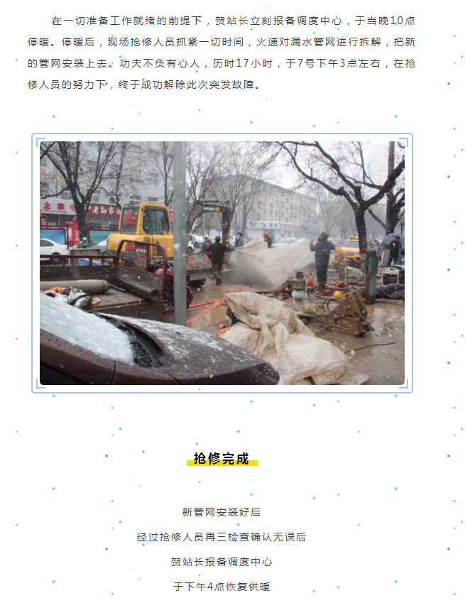 頂風(fēng)冒雪抓搶修,實(shí)干溫暖千萬家。
